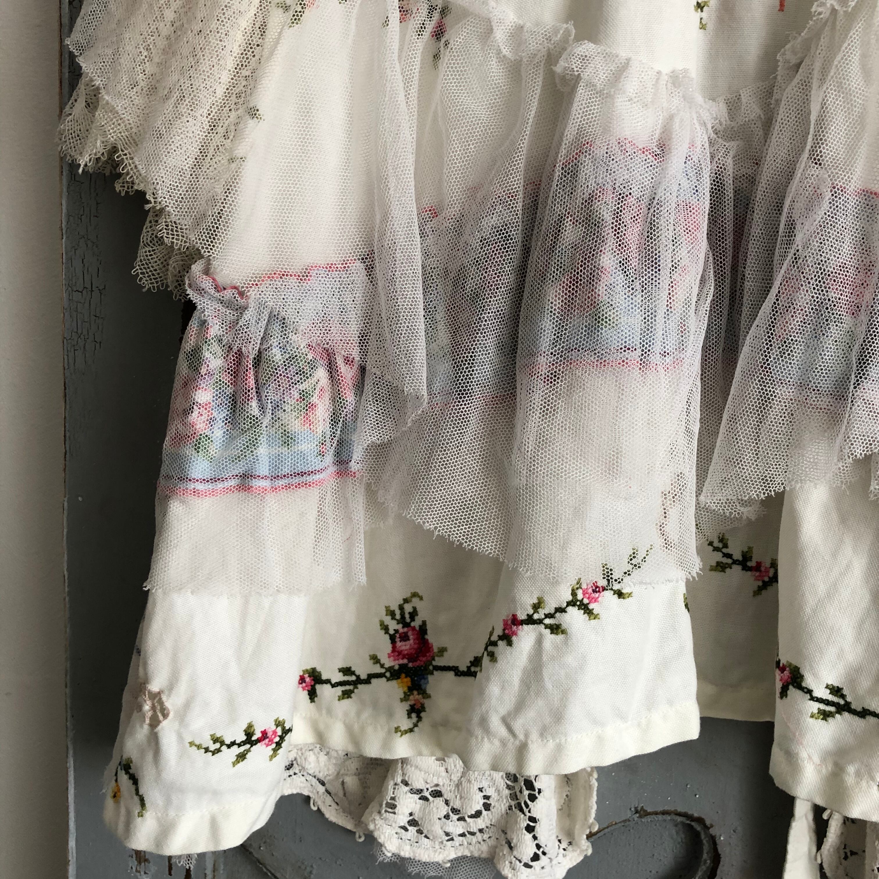 刺繍クロスステッチ布にコットンチュールやアンティークリボンなど
