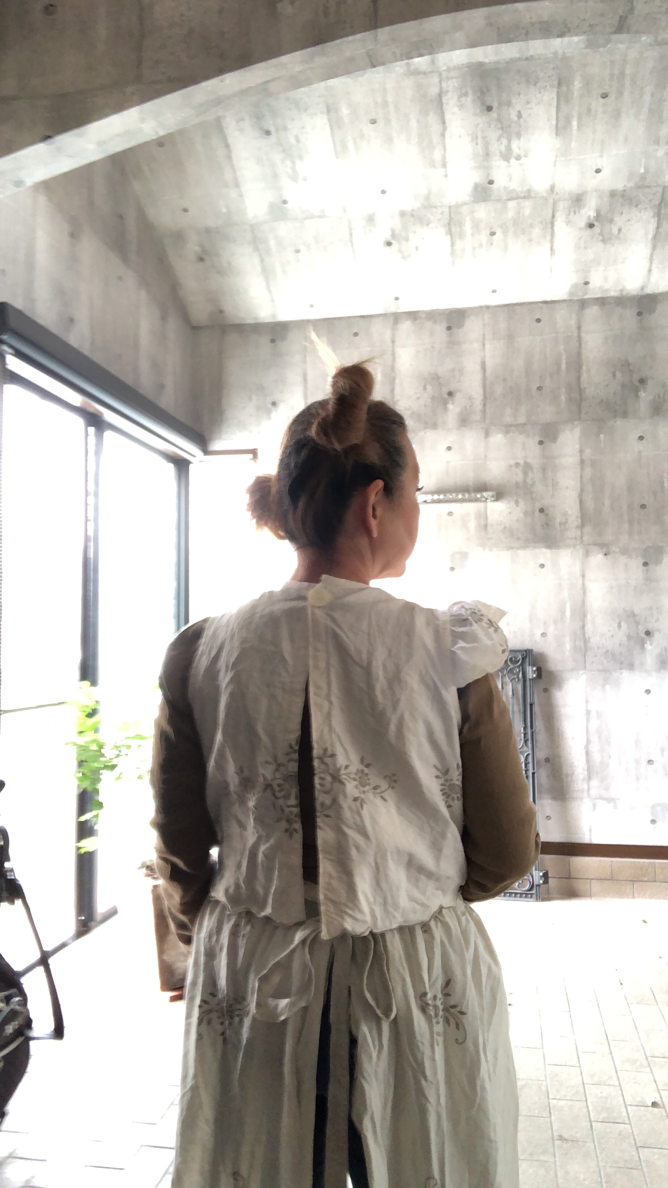 豪華なアンティークマディラレースを使ってエプロンドレスを作りました
