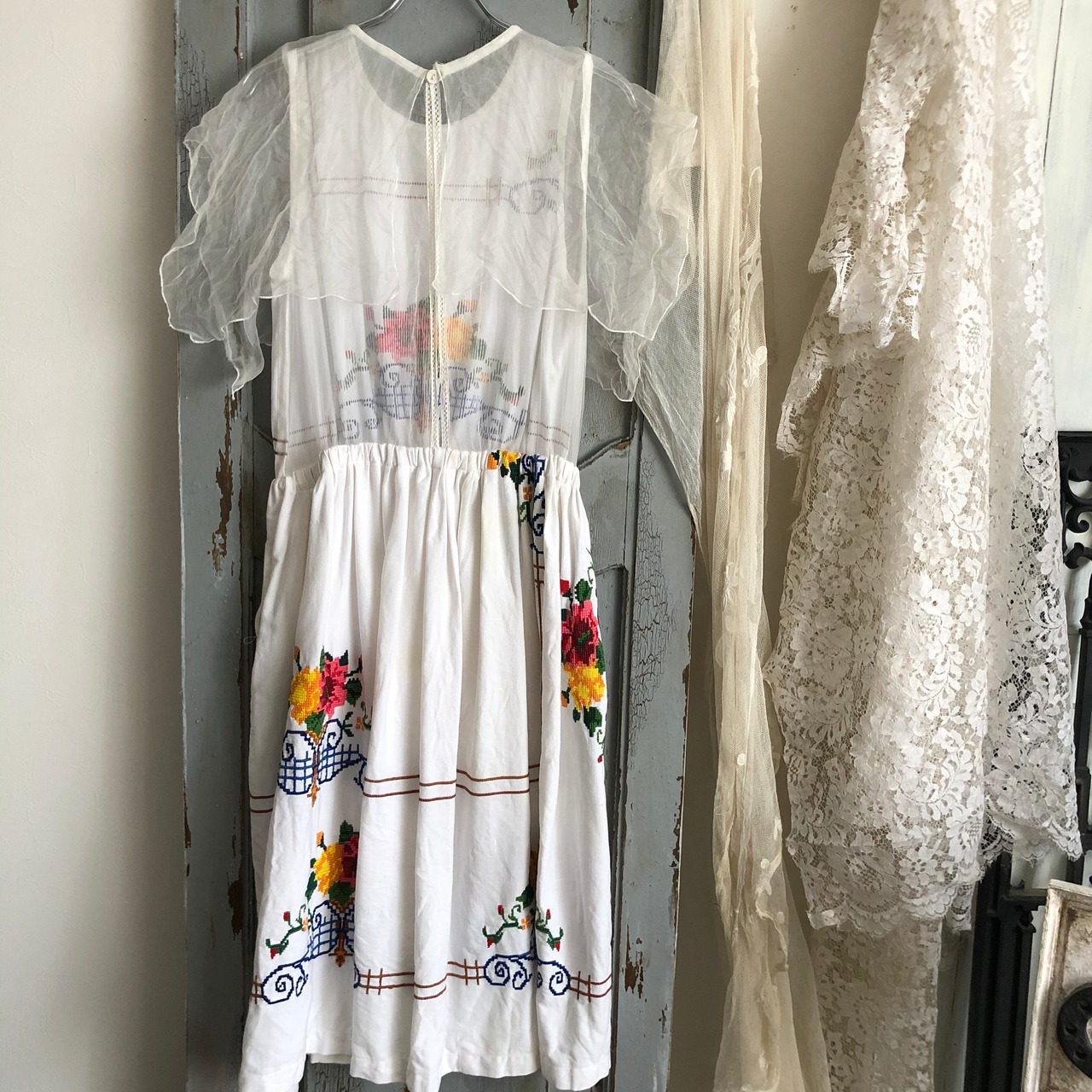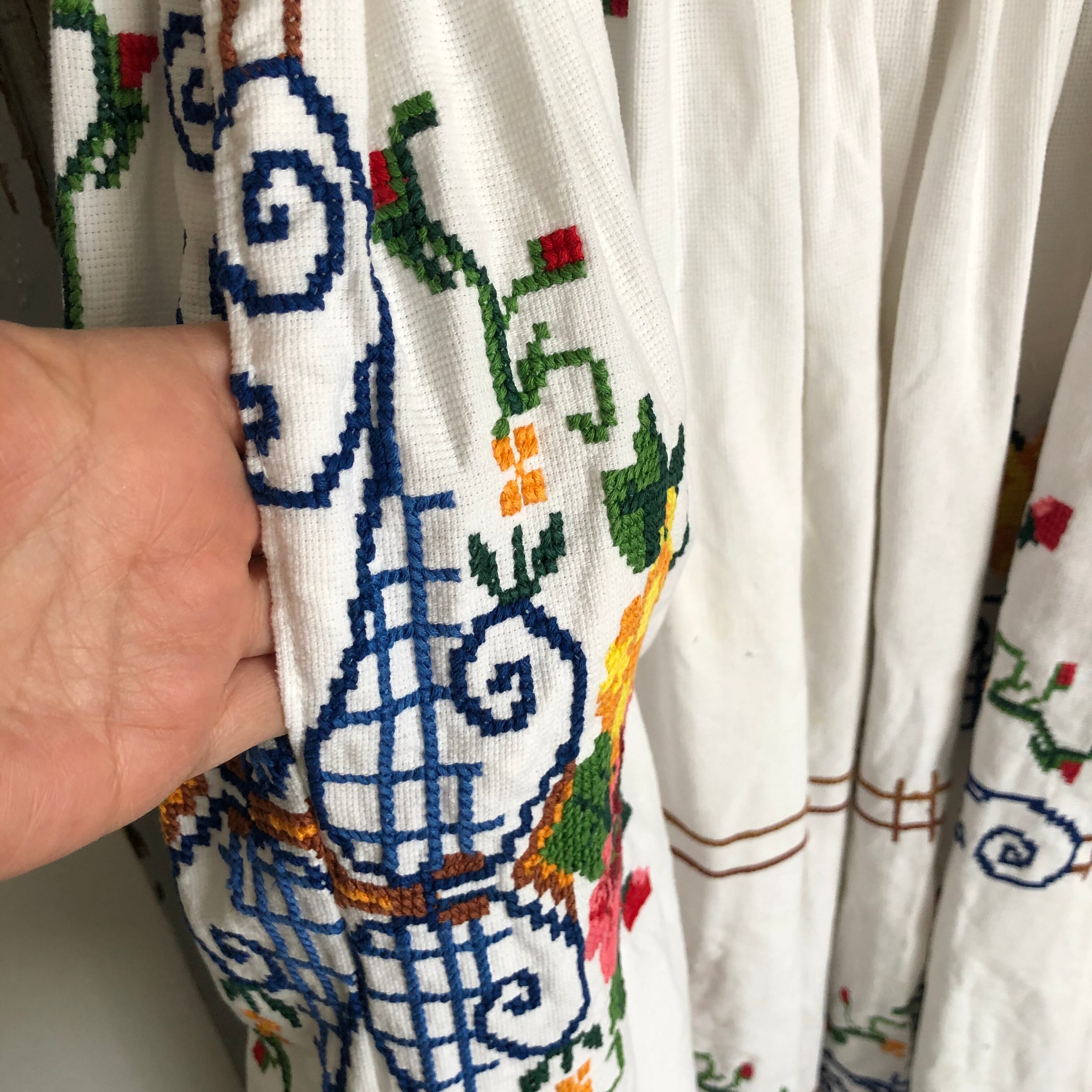 いつも人気のあるアンティーククロスステッチ布でワンピースをつくりました