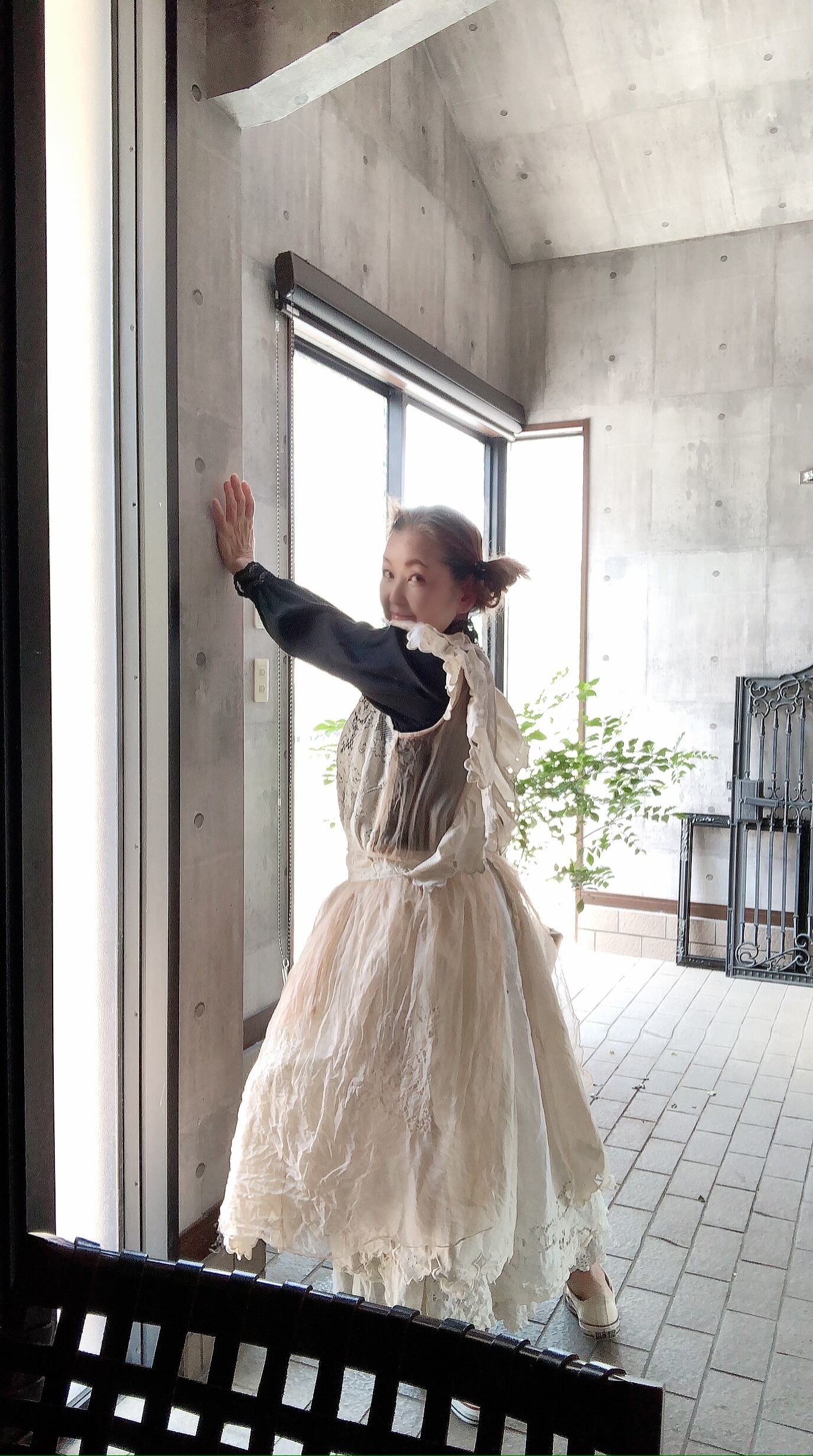 様々なアンティークを組み合わせてエプロンドレスを仕立てました