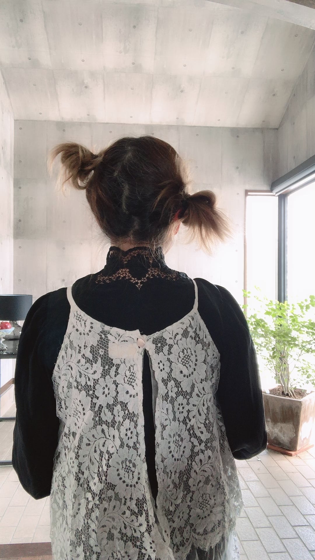 それぞれのレースが全てアンティークのウエディングに使われていたパーツを使って作りました