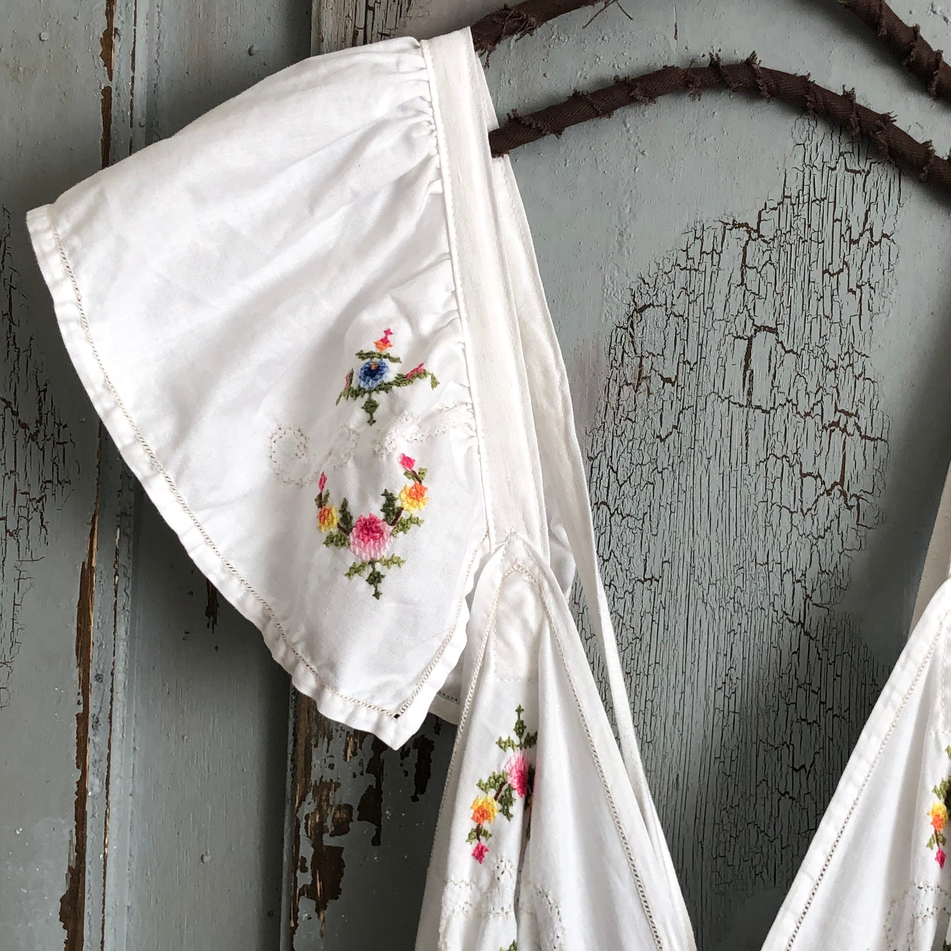 cross-stitchのクロスで 出来ています 肩やhipにも可愛らしいfrillが付いています片側を垂らして着ても個性的です innerの併せ方で一年中お召し頂けますパンツの長さはroll upして軽快に!