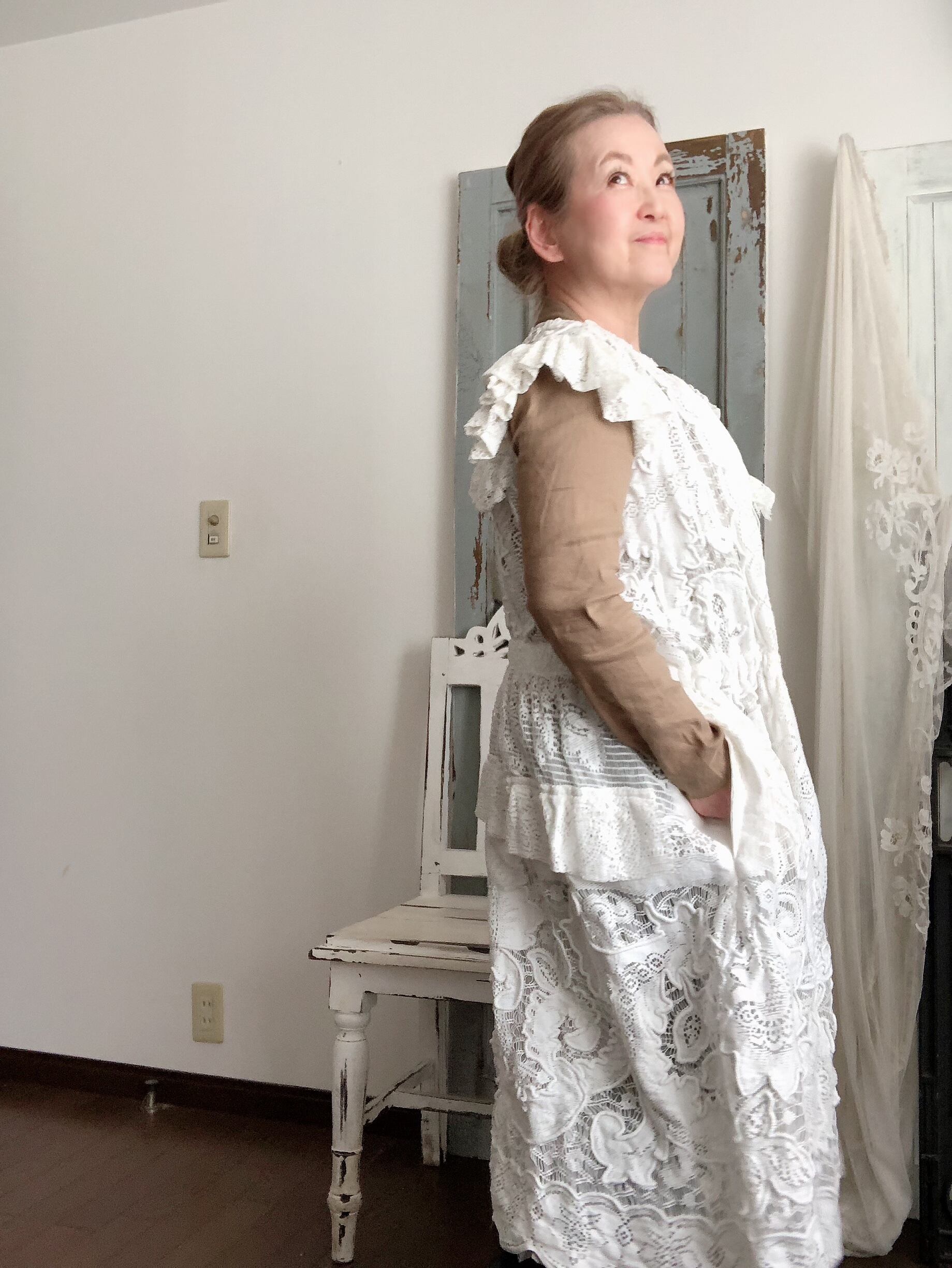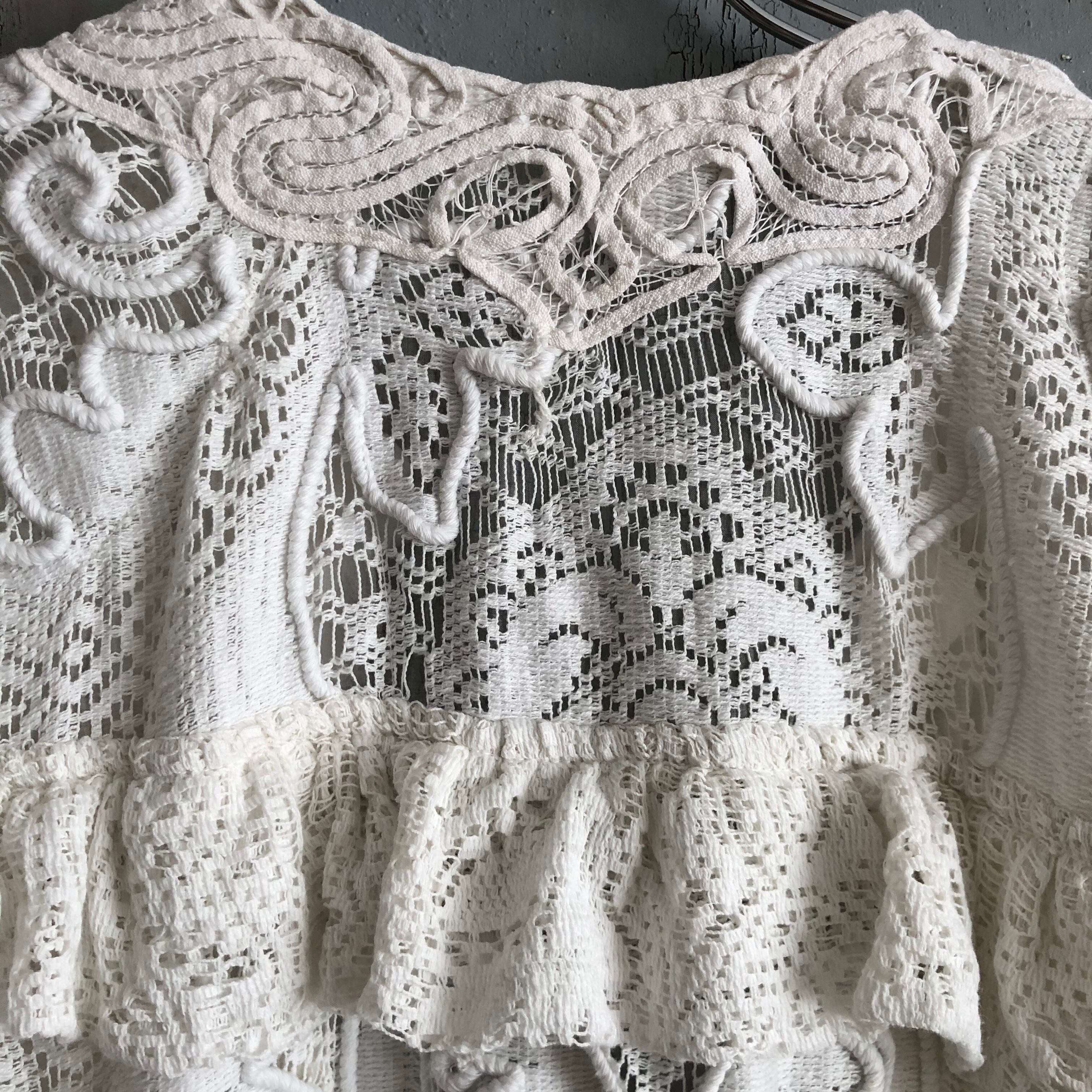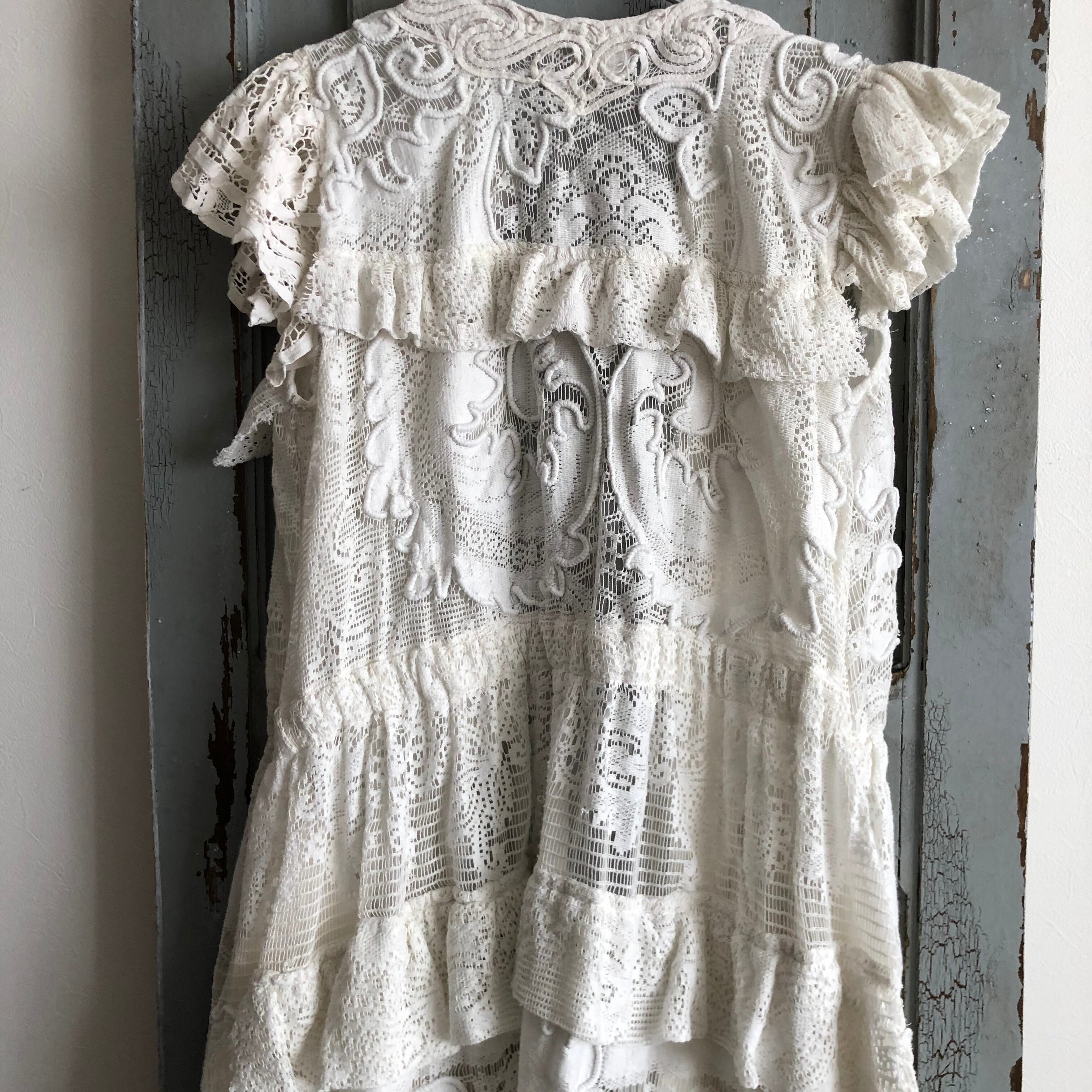 刺繍された素晴らしいantique laceでapron dressを作りました 前後どちらにでもお召し頂けます