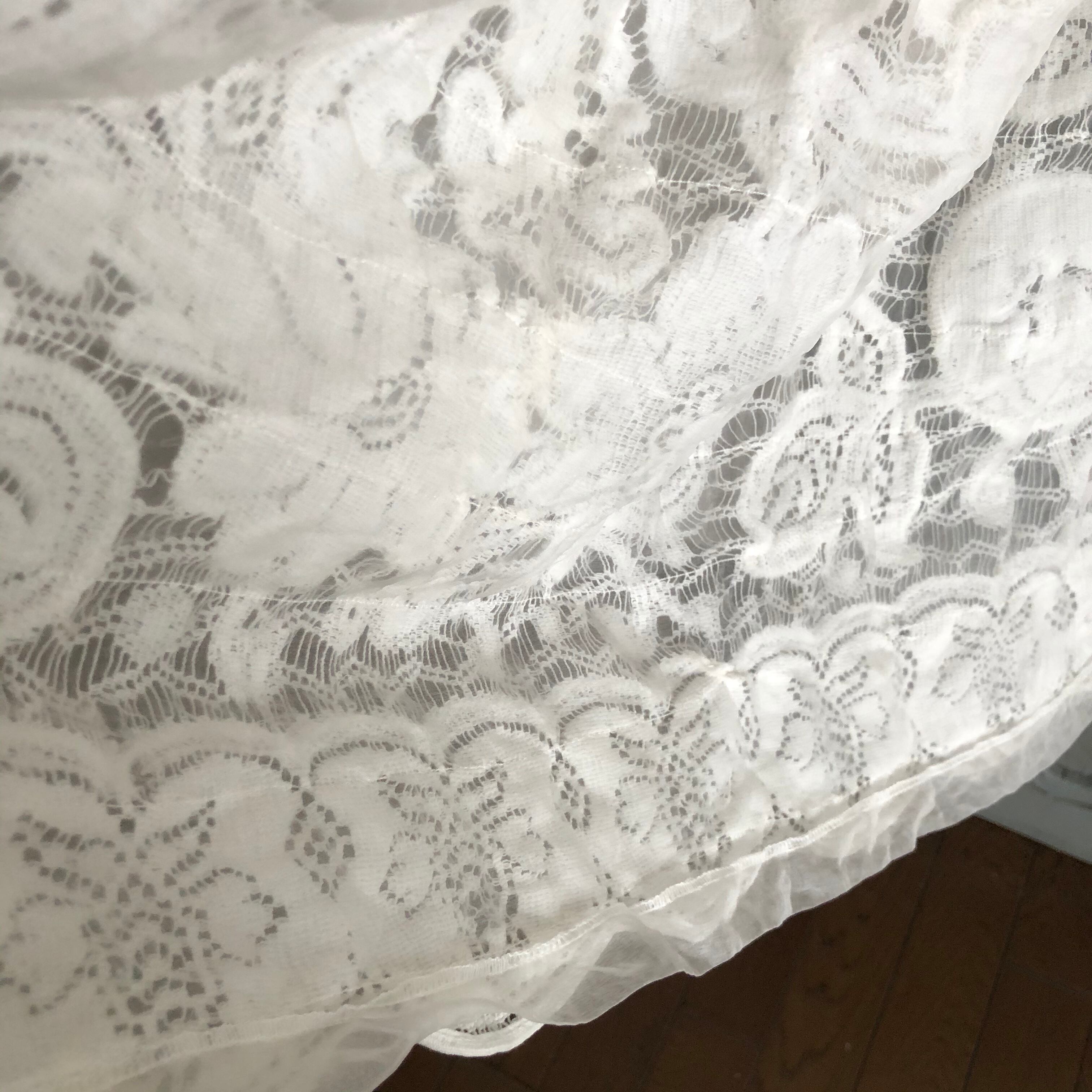 かなり古いlaceなので silk organdyで全てに裏打ちしてから仕立てていますが 沢山お直しも入れて これ以上出来ないくらい手が込んでいます
