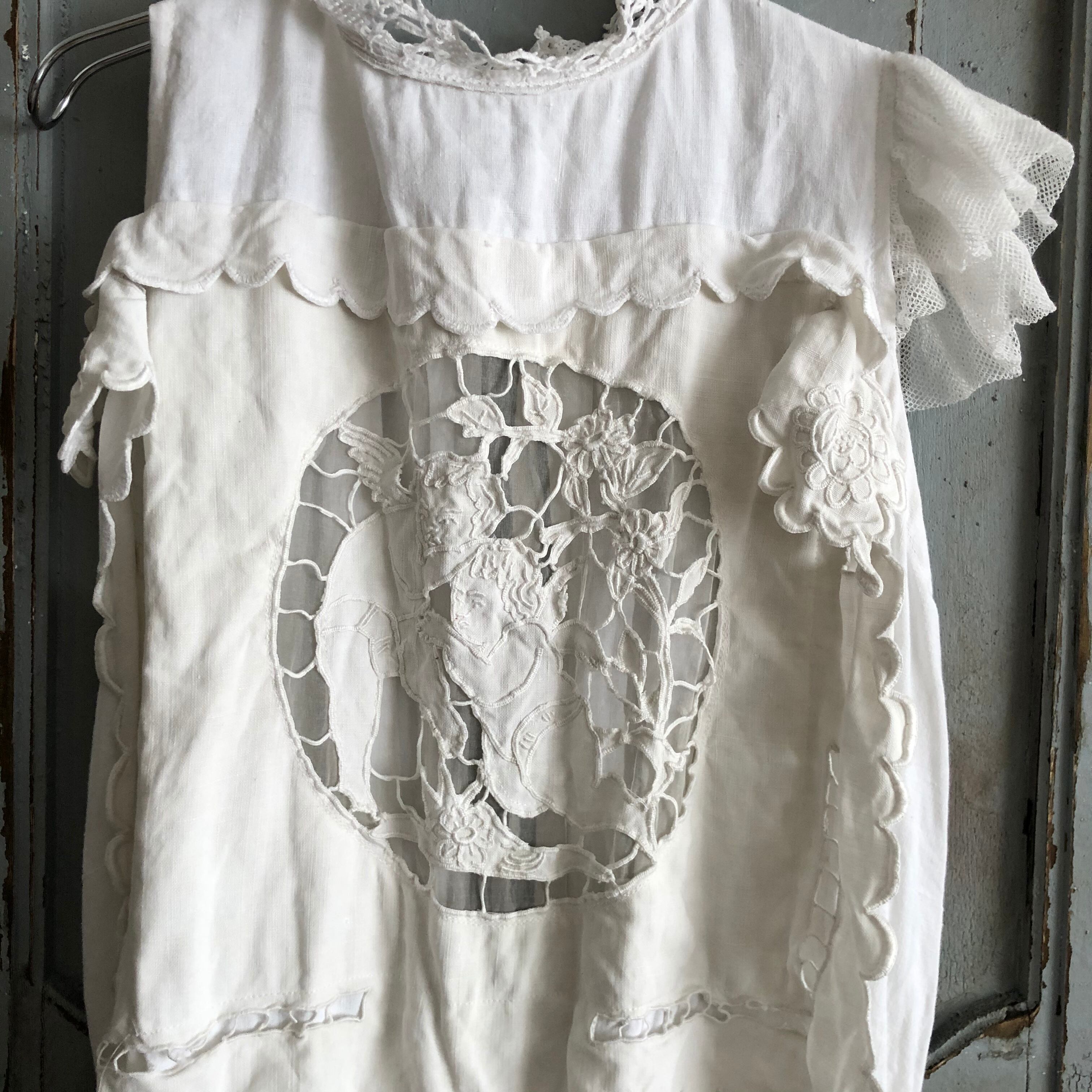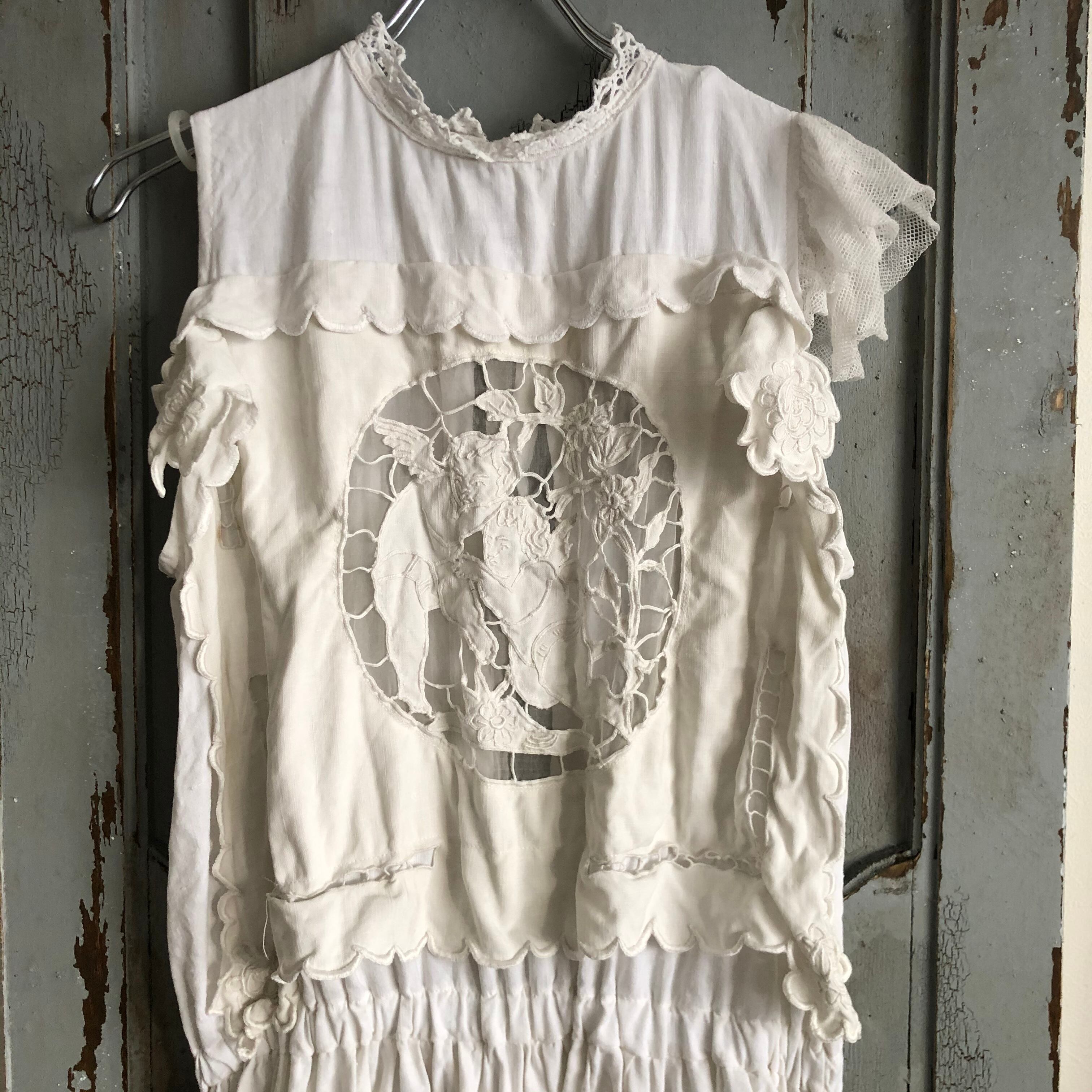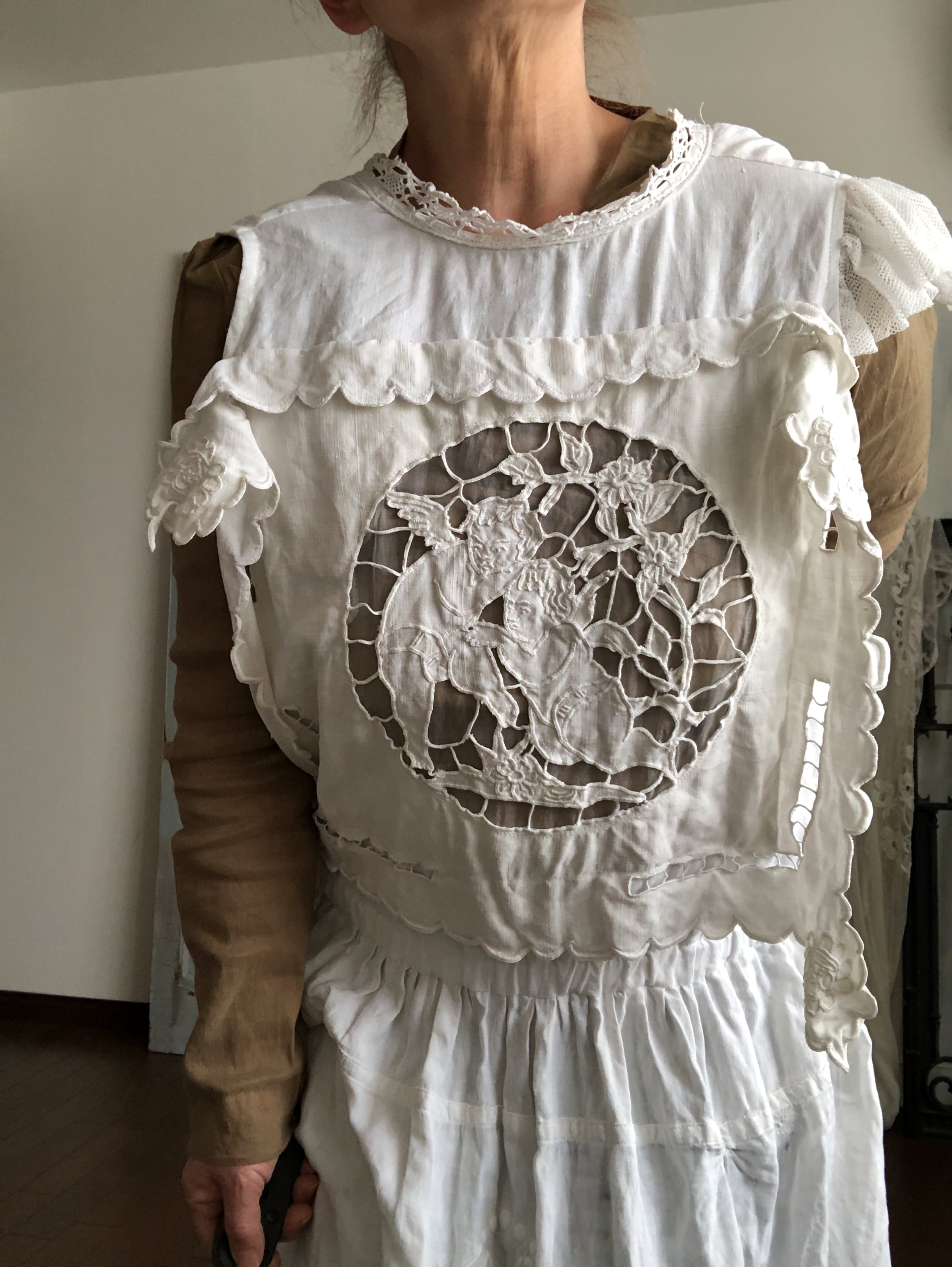 裏打ちしてあります skirt部分も素晴らしい刺繍とcutworkが施されています肩先もcottonの tulleで
