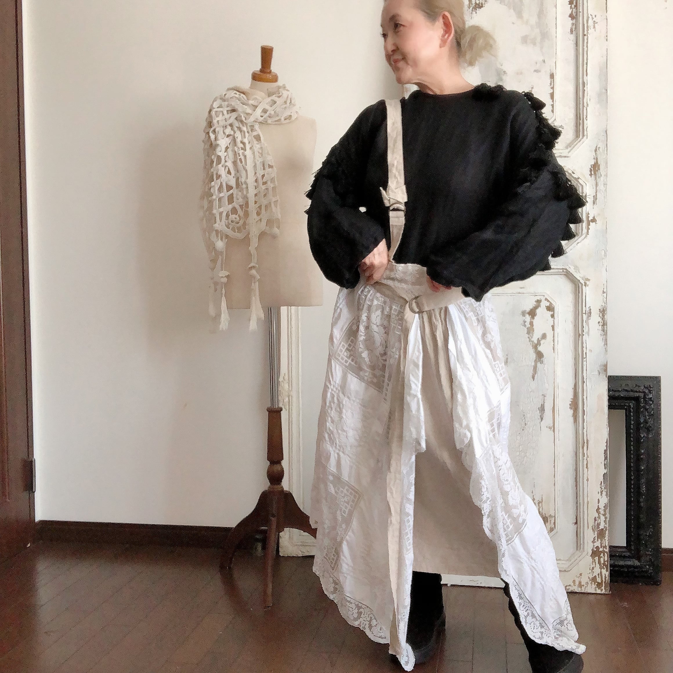 skirtに 綺麗なfilet laceと刺繍が素晴らしい