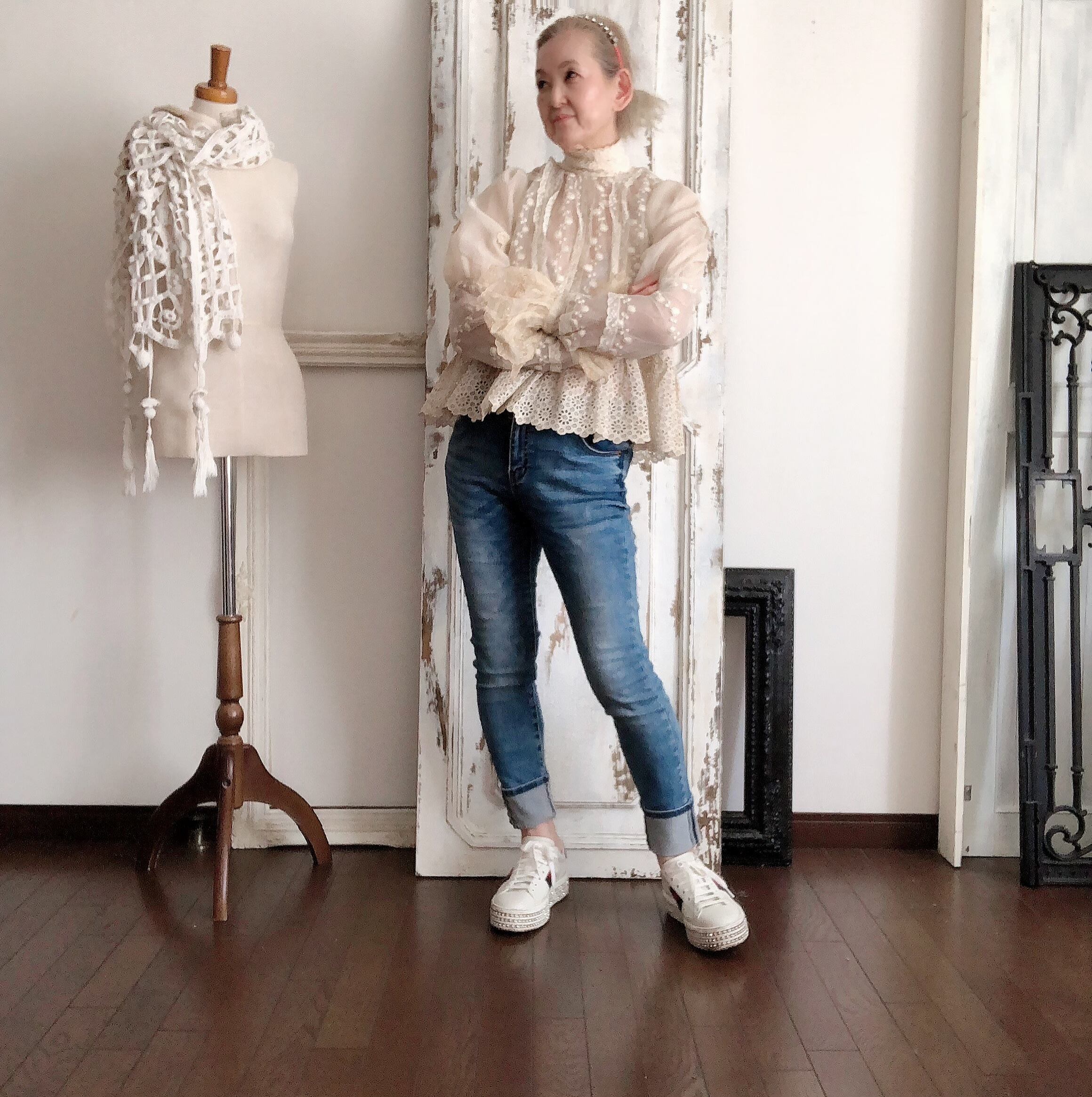 一からバラバラにして 私の想像から作り上げました 袖先まで覆うflowns 肩先はふんわりと