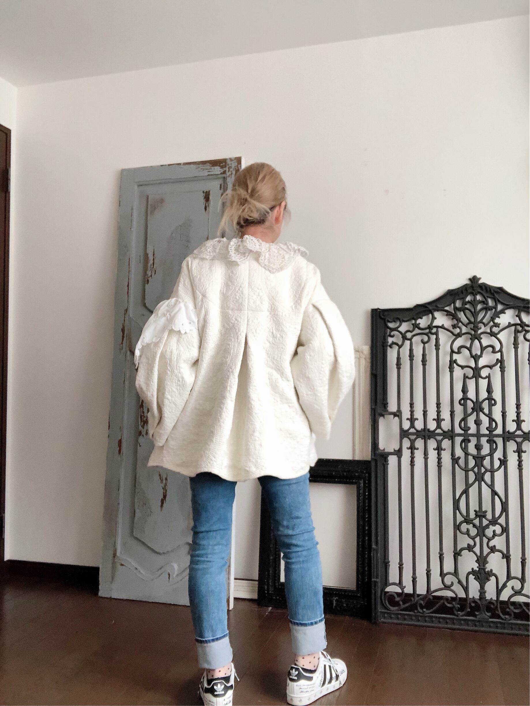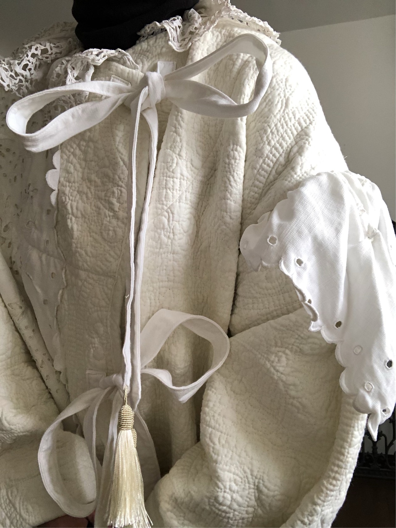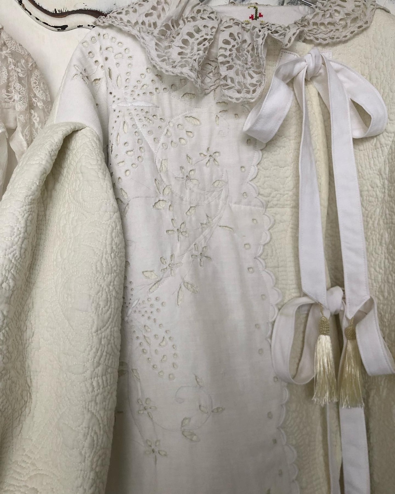 襟先のレースや胸元 肩先にも可愛く飾っています お紐で結んで着て下さいね!お紐の先には