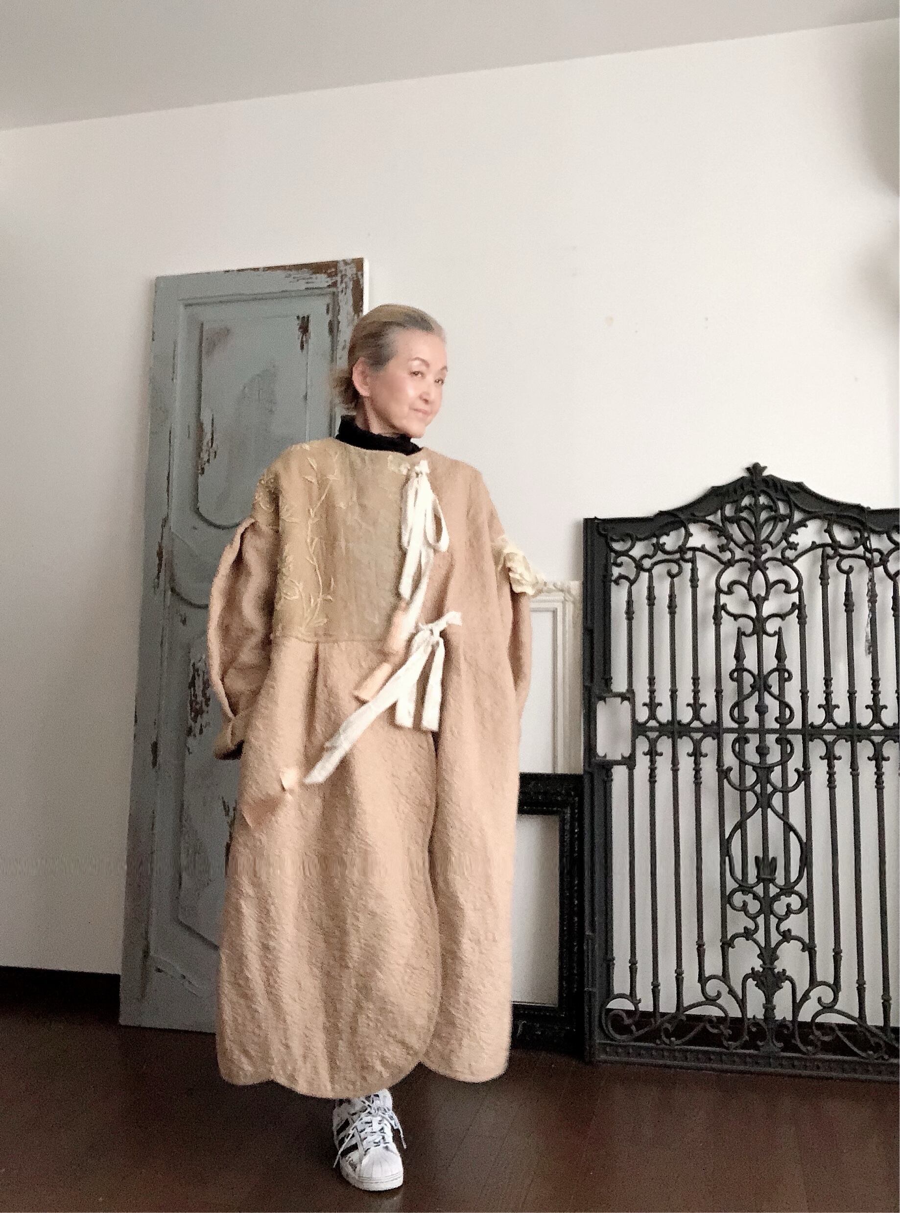 tuckが肩先から入っています 袖先はcocoon silhouetteなのでふっくらとしたお袖がpointです