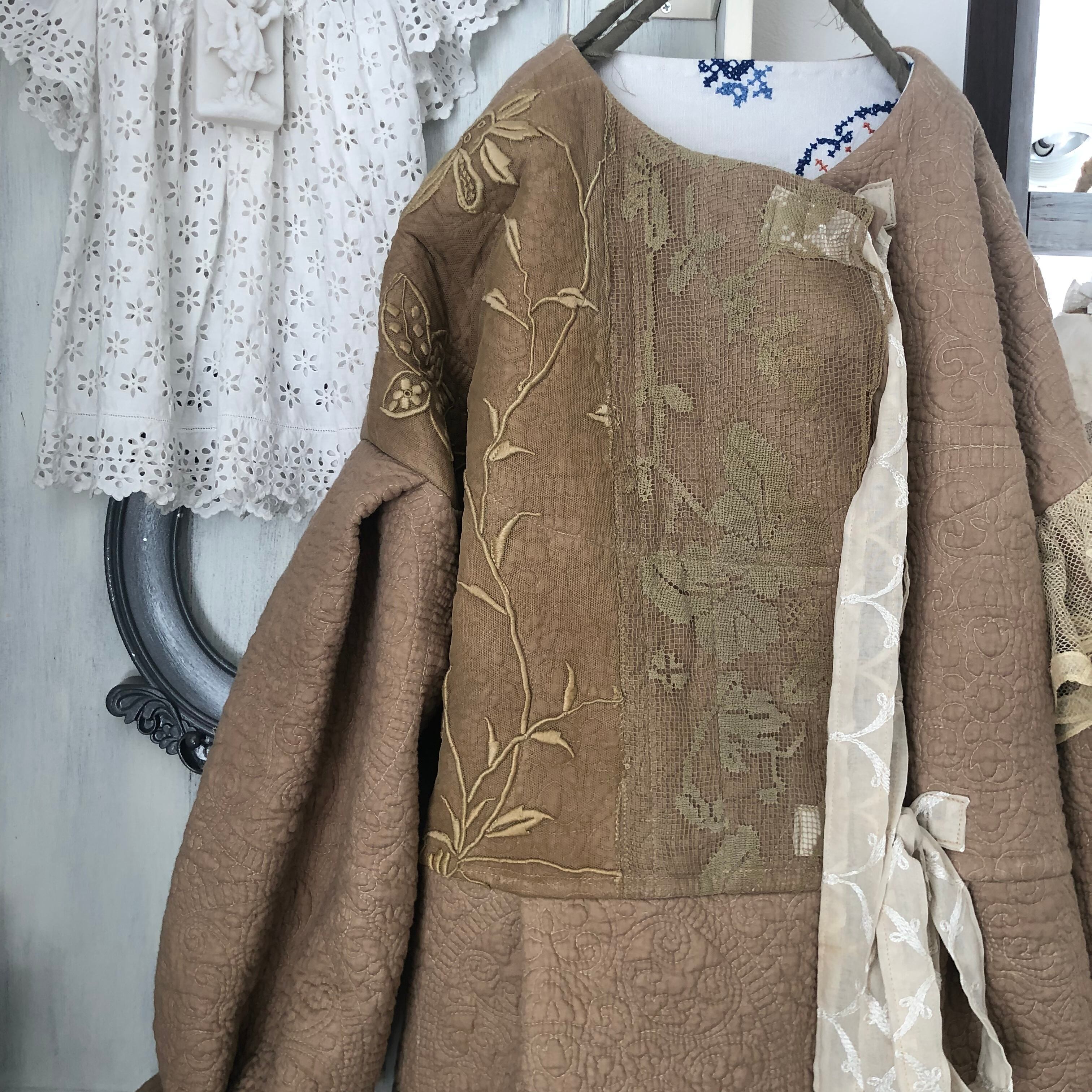 素晴らしい刺繍が施されたantiqueのtulle laceを